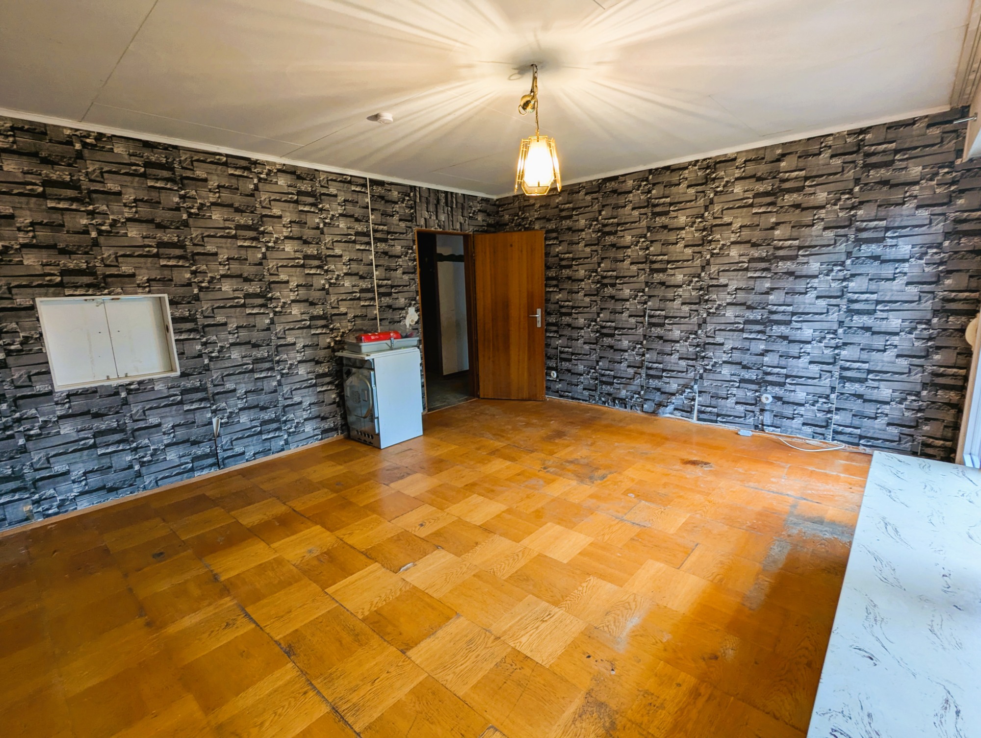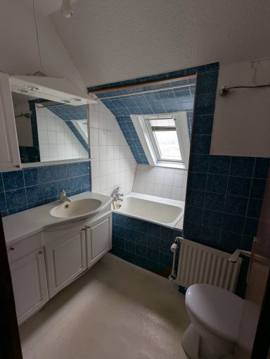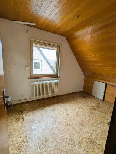 Das Gebäude weist einen erheblichen Instandhaltungsrückstand sowie einen aktuellen Wasserschaden auf und ist daher entweder abbruchreif oder ein Objekt für erfahrene Handwerker. Der bestehende Grundriss lässt sich aufgrund der Bauweise flexibel anpassen.
