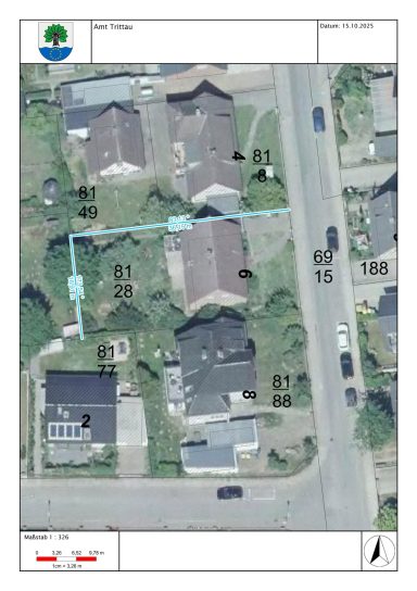 Laut Bebauungsplan ist eine Geschossflächenzahl (GFZ) von 0,4 vorgesehen. Das bedeutet: Es kann ein größeres Gebäude als das bisherige Objekt errichtet werden – ideal für alle, die mehr Platz oder moderne Architektur wünschen.